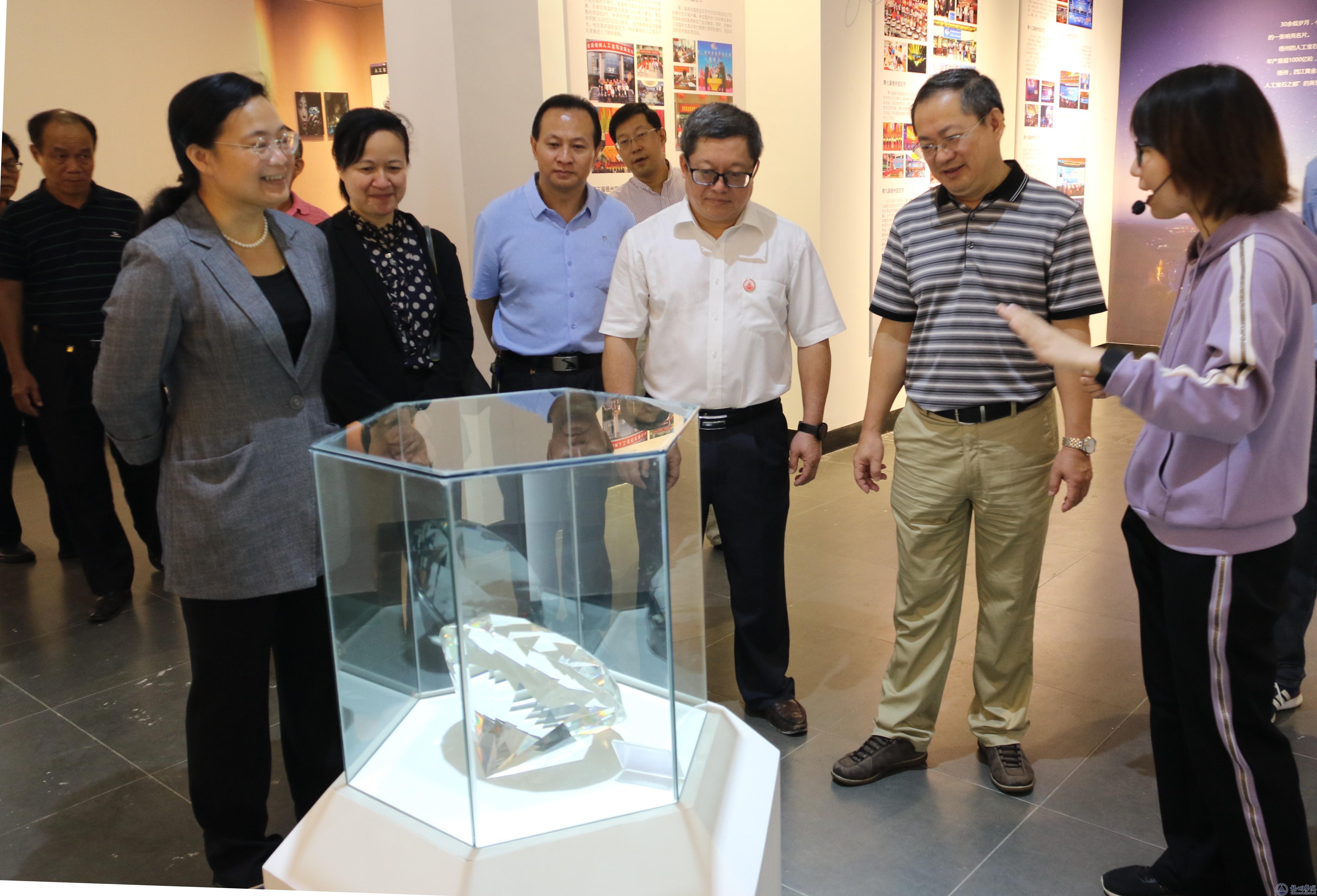 在我校博物馆3A国家级旅游景区,唐仁郭一行先后参观了西江商贸文化博物馆、西江流域民间文献研究中心、宝石文化博物馆,听取学校领导和工作人员关于我校博物馆3A国家级旅游景区建设情况和馆内物品的介绍。唐仁郭对我校结合梧州市地域特点,精心打造西江历史文化和宝石文化旅游景点表示赞赏,认为我校博物馆馆藏丰富,建设思路清晰,值得借鉴。他希望两校今后在校园文化建设方面进一步加强交流合作。