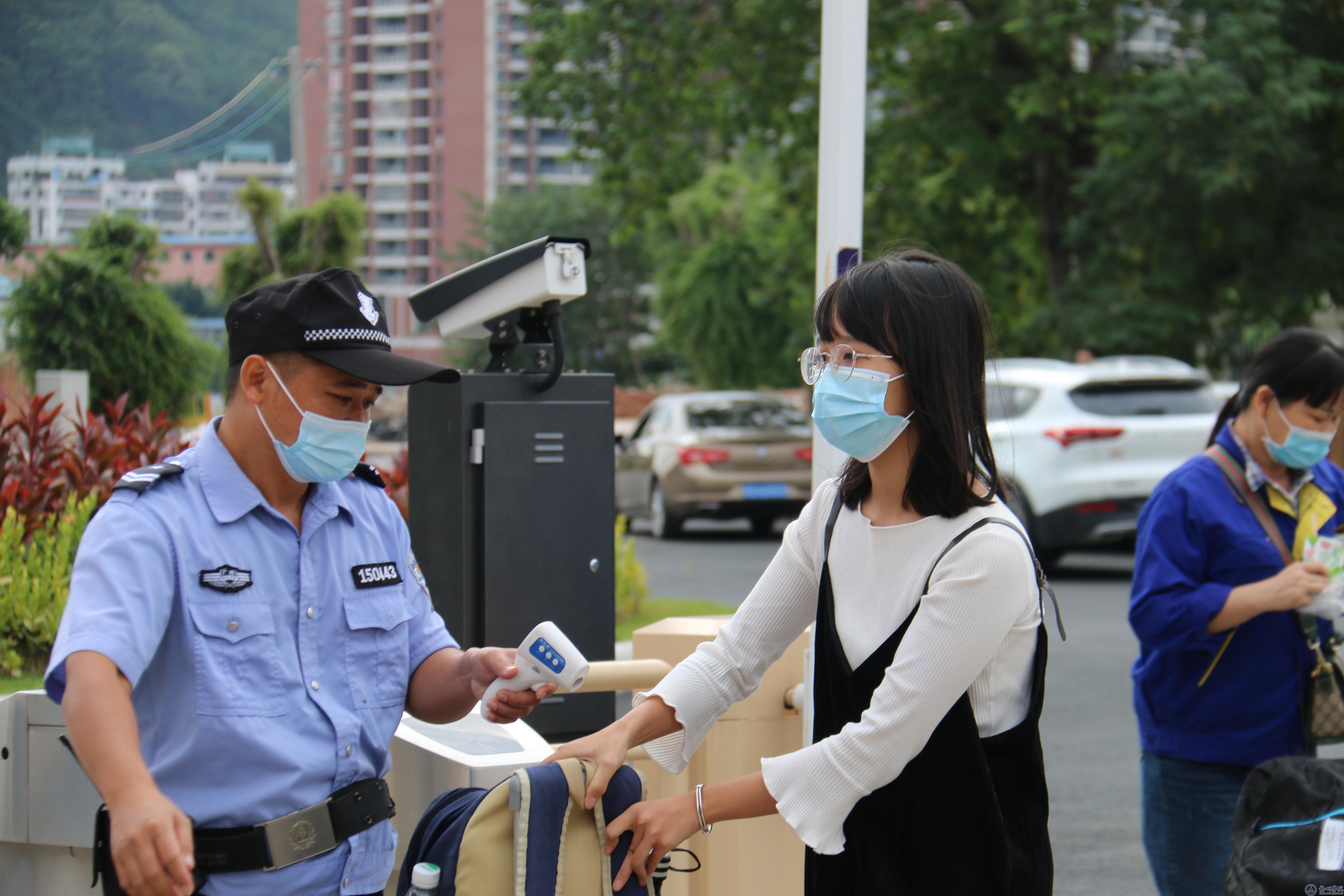 疫情期间,学校规定新生入学前14天在钉钉系统平台填报每日健康信息,以便了解新生健康状况。新生入学时,学校在南门、东大门、体育馆,都设有检测体温的地点。有专门的工作人员指导新生扫绿码、测温、消毒等疫情防控工作。此外,学校在体育馆内、新生宿舍处还设有医疗服务点,预防突发情况的发生,切实保障新生在疫情的特殊时期身体安全、交通安全。