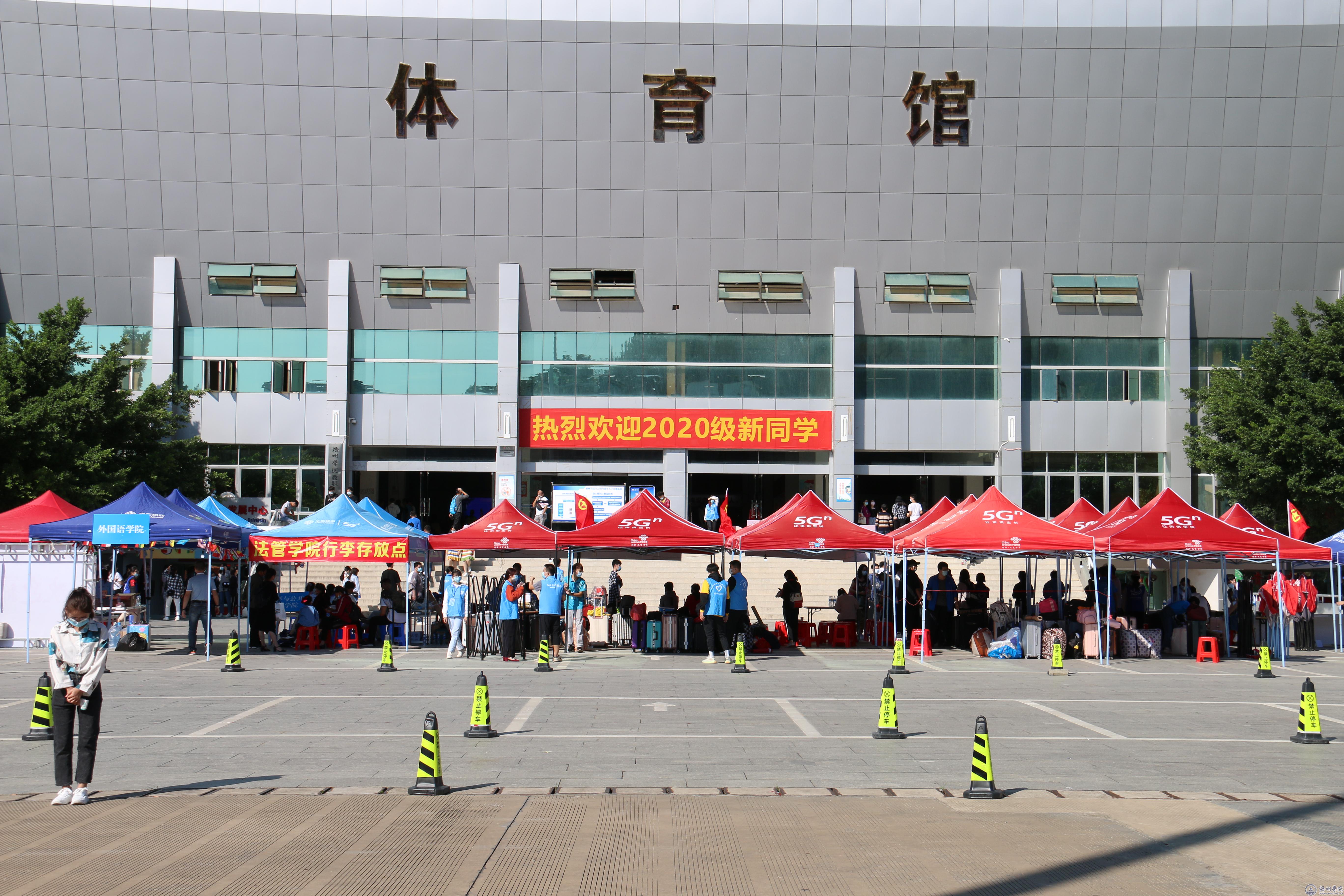 为了迎接新生到来,校园每个地方都提前做好提示标语。体育馆外摆放十几顶帐篷,用于指引新生入学报道、暂放行李等,力争做到让新生报道“一路绿灯”,还设有家长休息区、凉茶饮用区,供新生与家长免费领取凉茶饮用,解除路途疲劳。