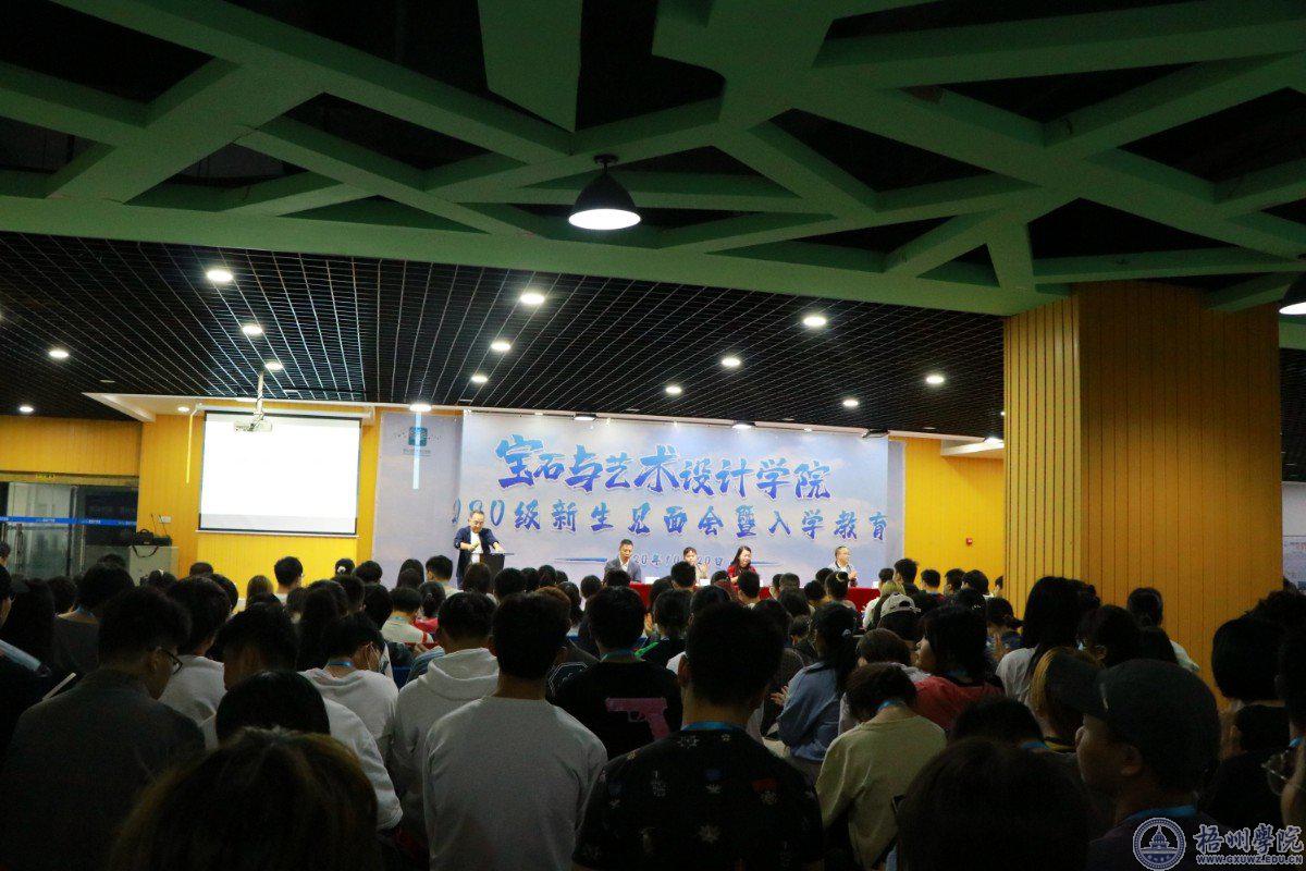 10月20日下午,宝石与艺术设计学院在体育馆负一楼路演大厅举行新生见面会暨入学教育会议。 学院领导、2020级辅导员、全体2020级新生参加会议。
