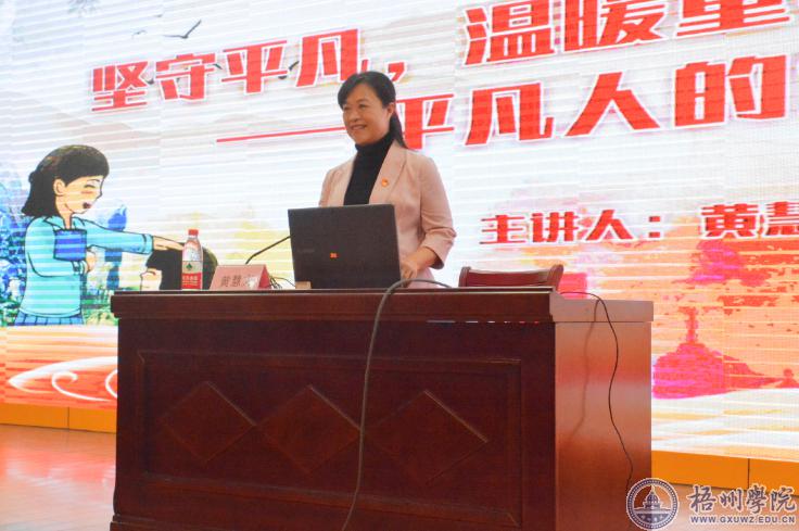 黄慧文老师是广西大学第一幼儿园园长、党支部书记,中小学高级教师,中国幼教研究会会员,广西幼教研究会理事。她为我校教师教育学院学前教育的同学们作主题为《坚守平凡,温暖童年,点亮人生——平凡人的筑梦故事》的报告,以真实生动的案例解读了自己对幼师行业的理解,通过现场的互动环节,拉近与同学们的距离。
