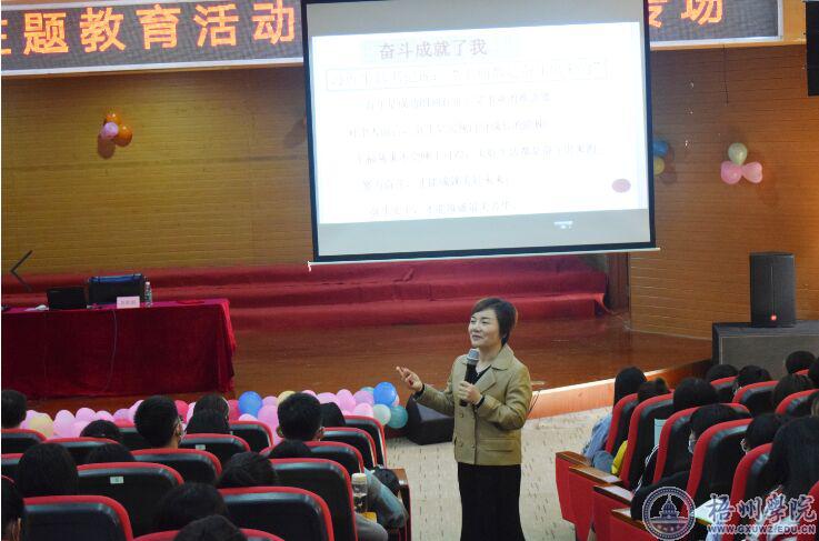 苏胜娟老师是中学正高级教师,自治区特级教师,首届钦州名师,钦州市专业技术拔尖人才,钦州学院特聘兼职教授,她以《春风化雨润桃李,只为春色满园时行走时--在追寻教育梦的路上》为题,结合自身的教师成长历程,与同学们分享了如何专注于教师教学工作的经验。