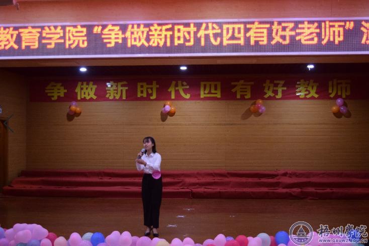 10月21日晚,教师教育学院举办的“争做新时代四有好教师”主题演讲比赛决赛在实验楼五楼音乐厅举行。