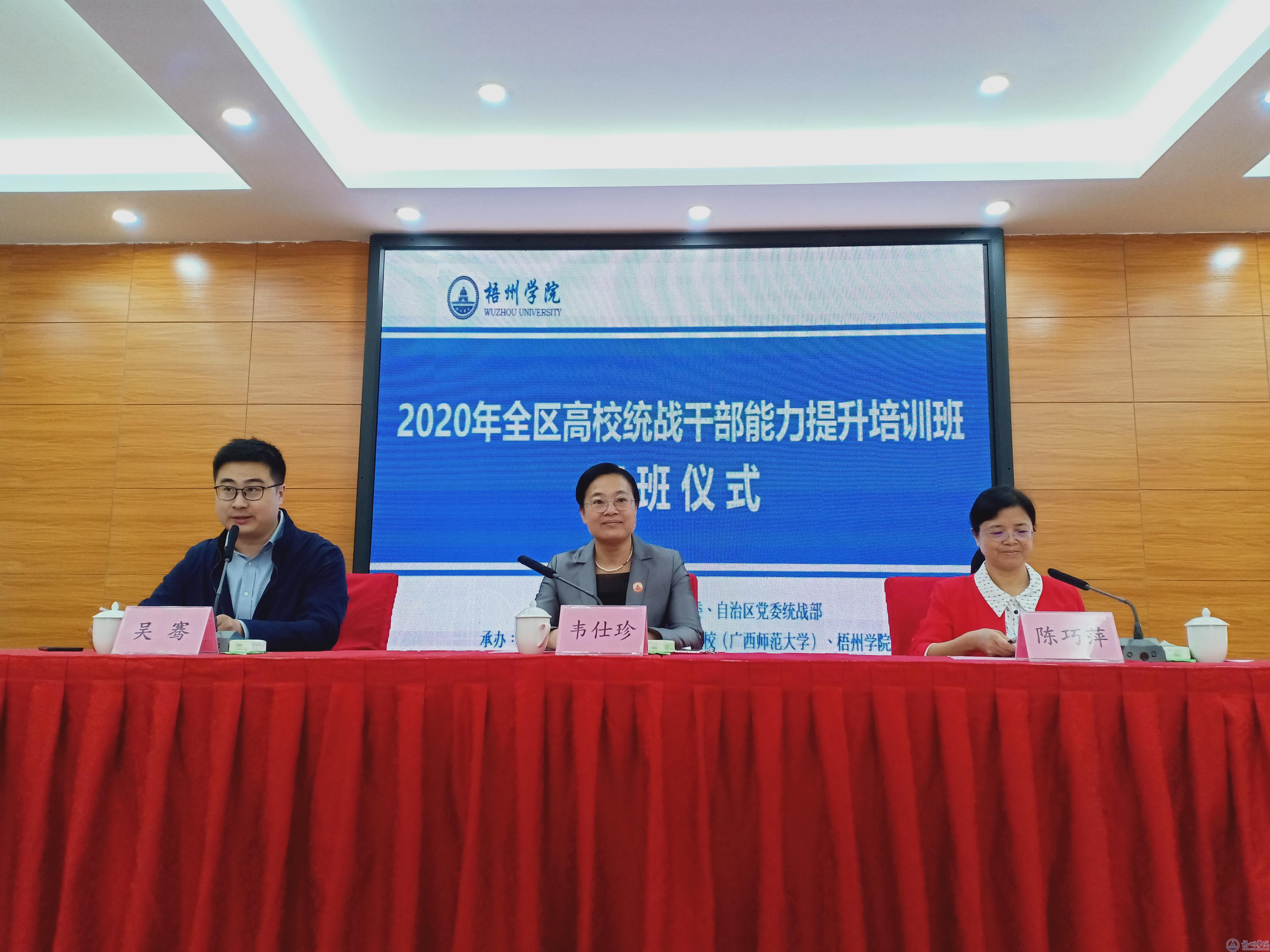 开班仪式上,我校党委书记韦仕珍介绍了梧州学院的发展历史、师资力量、统战工作等情况,要求学员在培训期间认真学习,努力实现理论学习有收获、思想政治受洗礼、工作困惑得解决。