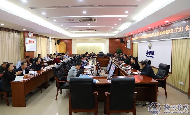 11月4日上午,我校党委理论学习中心组在明理楼第一会议室召开2020年第四次学习扩大会议,专题学习党的十九届五中全会精神。学校党委书记韦仕珍主持会议,学校领导曹迎、玉振明、梁业华、麻新纯和中心组其他成员参加集中学习,各职能部门、教辅单位、群团组织主要负责人,各二级学院党政主要领导列席会议。
