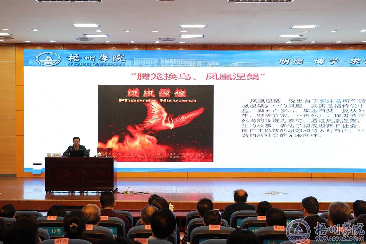 11月4日下午,我校在明理楼学术报告厅举办梧院大讲坛活动,校党委书记韦仕珍作《深入学习贯彻习近平总书记关于教育的重要论述》专题报告。学校领导曹迎、玉振明、梁业华、麻新纯,全体中层干部,各二级学院教师参加了报告会。报告会由校党委副书记曹迎主持。