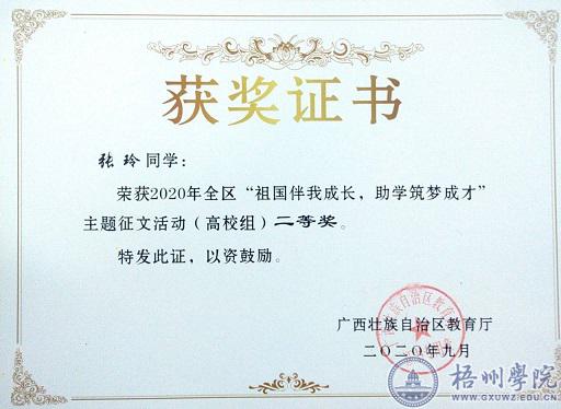 2020年6月,自治区教育厅组织开展了2020年全区“祖国伴我成长,助学筑梦成才”主题征文比赛。