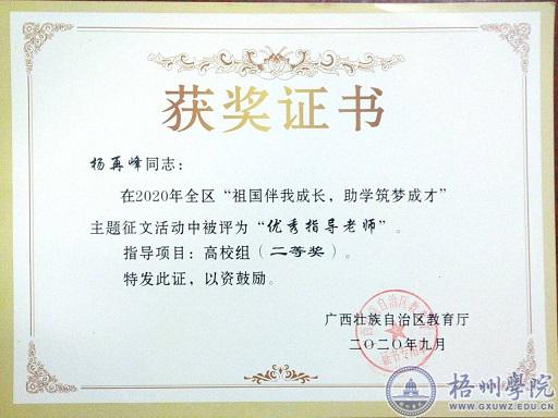 经教育厅组织专家评审,我校学生张玲、李艳荣、黎锦英撰写的参赛征文分别获得(高校组)二等奖、三等奖、优秀奖,杨再峰、严绘两位老师获得“优秀指导老师”称号。