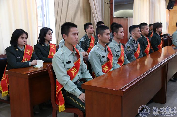 曹迎作讲话。她指出,我校正在与梧州军分区共同建设梧州市国防教育基地,她鼓励退役返校学生在征兵宣传、国防教育、民兵建设和学风建设等方面发挥特长作用共同努力建设好国防教育基地。她对退役返校大学生提出三点希望:发扬军队的优良传统,积极传递正能量,树立新榜样;以新时代军人的精神克服在学习和生活上的困难,完成学业;以军人的优良作风和顽强意志提升自身学业和综合素质。