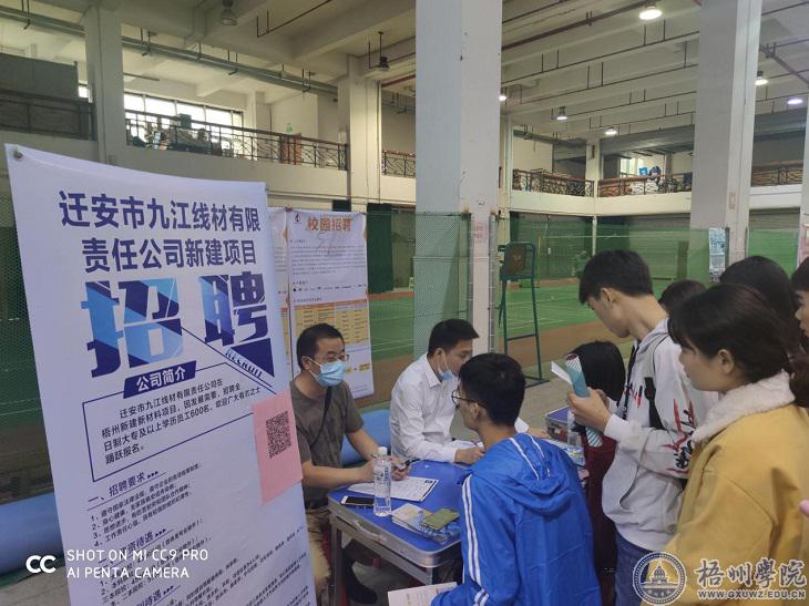 为切实做好我校2021届毕业生就业工作,促进毕业生更充分和更高质量就业。11月15日上午,梧州学院易校招第二场线下双选会在学校体育馆举行。此次双选会采用“易校招”招聘系统为用人单位和毕业生提供优质的服务,有来自全国76家用人单位到现场参加双选会,为2021届毕业生提供3780个就业岗位,招聘岗位涵盖教育培训、中小学教育、地产、大数据、制造、机械化工、电子、IT、生物科技、新兴产业等行业,约有3000名毕业生参加。