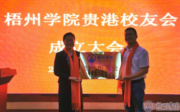 随后,韦仕珍书记代表学校校友会向梧州学院贵港校友会授牌,新当选的梧州学院贵港校友会会长廖清源代表贵港校友会向母校回赠纪念品“拜师石”。