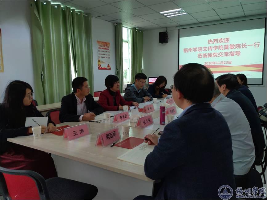 11月23日下午,莫敏一行受到了广西外国语学院文学院院长吕植家、副院长梁家上、汉语国际教育学科带头人张小克教授及国际教育学院杨芳副院长等领导老师热情接待。双方对各自办学情况做介绍后,就汉语国际教育专业的培养模式、课程设置、专业实践、学科竞赛、考研情况、毕业论文、实习就业等方面进行了讨论交流。
