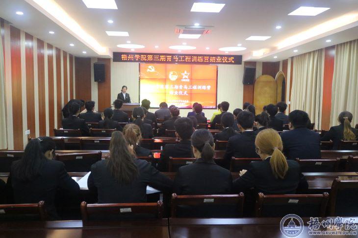 11月30日晚,梧州学院第三期青马工程训练营结业仪式在明理楼七楼视频会议室举行,校团委书记李德华、副书记秦伟,二级学院团委书记及工作负责人,第三期青马工程训练营全体学员参加了仪式。