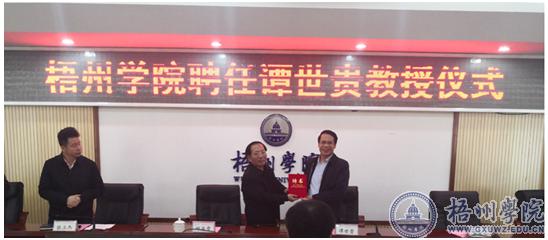 | 12月9日上午,我校在明理楼八楼第一会议室举行客座教授聘任仪式,聘请谭世贵为我校客座教授。副校长邱房贵及,教务处、人事处、科研处和法管学院相关人员出席。