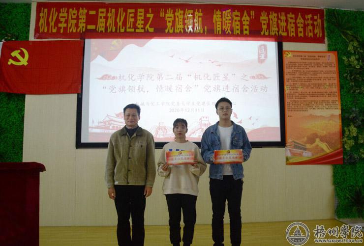 为贯彻党的十九届五中全会精神,响应第三次党代会提出的“党旗进公寓”号召,12月11日,机化学院在第二食堂举办第二届“机化匠星”之“党旗领航,情暖宿舍”党旗进宿舍活动。校党委组织部、党委宣传部、学生工作处等部门相关领导应邀出席活动,机化学院部分师生党员代表参加本次活动。