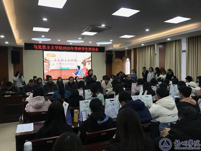 12月23日下午,马克思主义学院在明理楼七楼视频会议室召开考研学生欢送会。学院领导、哲学专业全体教师、2017级考研学生和各年级学生代表参加了活动。