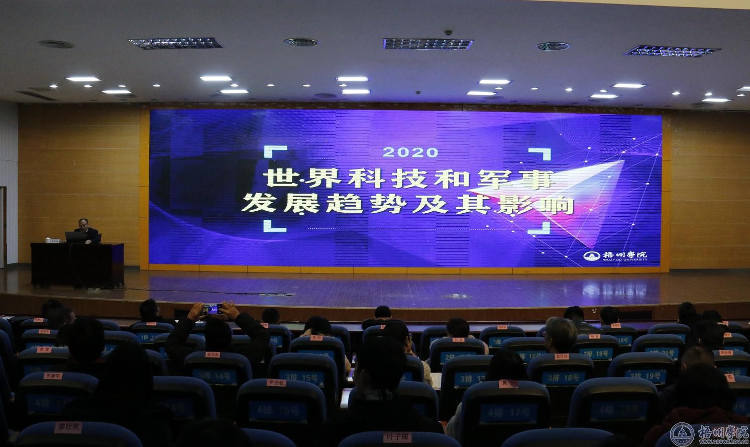 12月31日下午,我校在明理楼一楼学术报告厅举办《世界科技与军事发展趋势及其影响》专题讲座,讲座由副校长玉振明主讲。学校全体中层干部、全体科级干部和专职组织员聆听了讲座。
