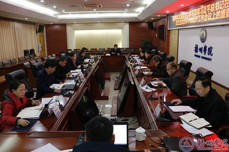 1月8日上午,学校召开党委常委会议,认真学习贯彻习近平总书记在中共中央政治局民主生活会和中央经济工作会议上的重要讲话精神,研究部署学校贯彻落实工作。会议由校党委书记韦仕珍主持,杨奔、曹迎、玉振明、梁业华、麻新纯、宾月景、黄健武、陈健萍等学校党委常委出席会议。副校长邱房贵,校长助理李远林、覃雄彪,纪委副书记谭永军、高小雄列席会议。