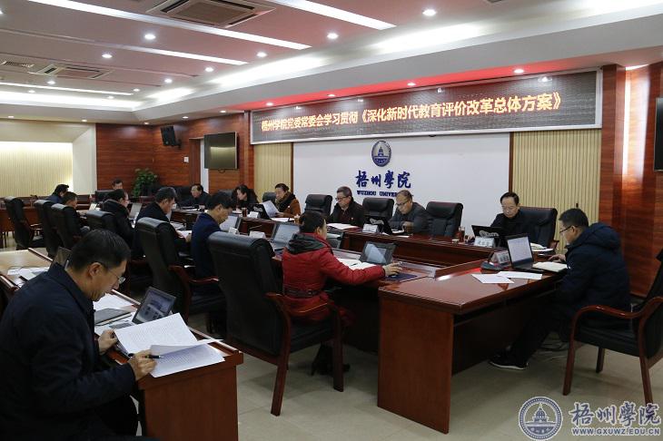 学校党委常委会指出,教育评价事关教育发展方向,是树立正确办学导向的指挥棒,也是提高现代教育治理能力的关键点。出台的《总体方案》,是以习近平同志为核心的党中央做出的重大教育决策部署,对于全面贯彻党的教育方针,完善立德树人体制机制,破除“五唯”顽瘴痼疾,促进教育高质量发展,确保正确办学方向具有重大意义,为我校继续深化教育教学改革、完善内涵建设有着重要指导意义。