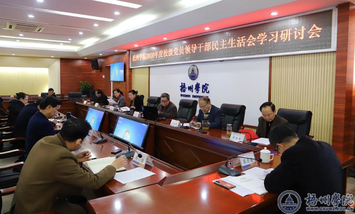 1月15日下午,我校召开2020年度校级党员领导干部民主生活会学习研讨会。校党委书记韦仕珍主持会议,校领导全体成员参加学习会。