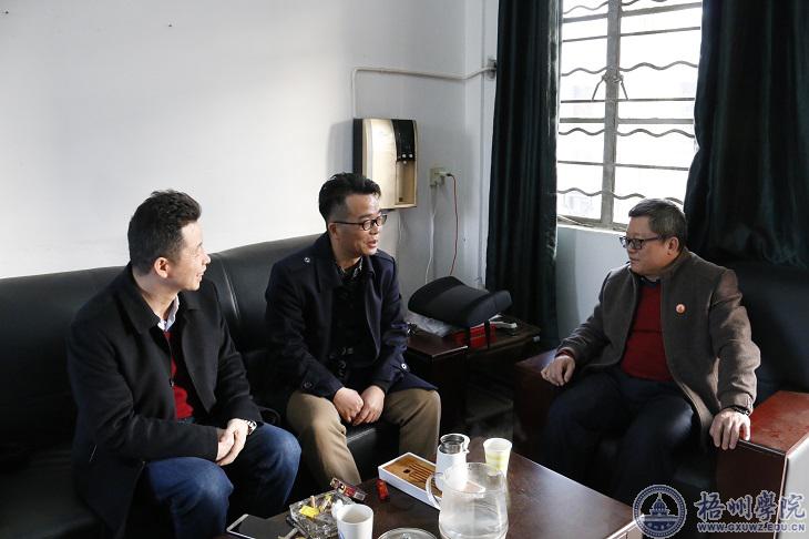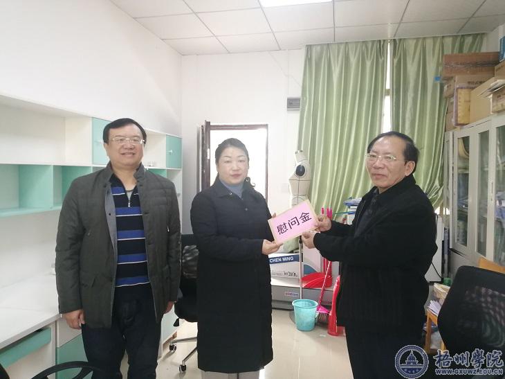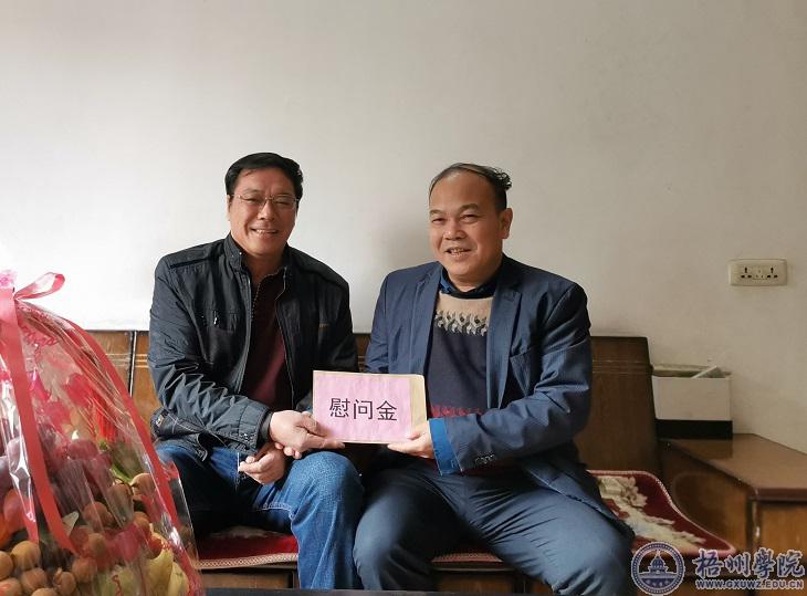 校纪委梁业华书记慰问原广西大学梧州分校总务处副处长吴鉴留 (何泽坚 摄)