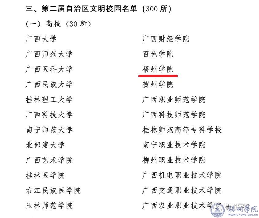 我校荣获第二届“自治区文明校园”称号。12月28日,广西自治区党委、政府印发了《关于表彰第八轮自治区文明城市和第二届自治区文明家庭、文明校园的决定》,我校荣获第二届“自治区文明校园”称号。(12月29日官网报道)