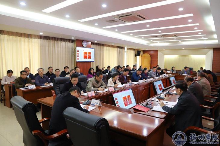 3月26日上午,我校在明理楼八楼第一会议室召开党委党史学习教育第一次专题学习暨党委理论学习中心组2021年第一次学习(扩大)会议。学校党委书记韦仕珍主持会议,学校领导杨奔、曹迎、玉振明、邱房贵、梁业华、麻新纯、宾月景和其他中心组成员参加集中学习,各职能部门、教辅单位、群团组织主要负责人,各二级学院党政主要领导列席会议。