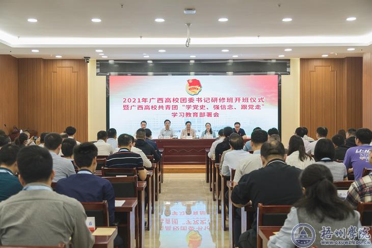 3月29日上午,广西高校团委书记研修班开班仪式暨广西高校共青团“学党史、强信念、跟党走”学习教育部署会在我校明科楼多功能学术报告厅举行。我校党委书记韦仕珍出席开班仪式并讲话,共青团广西区委副书记左向蕾,自治区党委教育工委宣传部副部长、教育厅思政处副处长、高校团工委副书记胡寿鹏,共青团广西区委学校部副部长刘志尧,以及来自全区81所高校的团委书记参加了开班仪式。开班仪式由我校团委书记李德华主持。