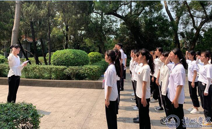 外国语学院党委副书记庄雨现场向学子们讲述了梧州作为广西红色革命摇篮,无数革命先烈在这里为了民族解放事业抛头颅、洒热血的故事,呼吁青年学生要志存高远,牢固树立跟党走的信念。学院团委书记书记梁眉带领学子们重温入团誓词。誓词铿锵有力,护党决心坚定不移。最后,大家怀着崇敬的心情,向长眠在革命公墓的烈士肃立默哀,向革命烈士敬献花圈,表达了对革命先辈的敬仰与追思。