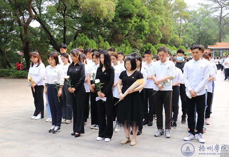 学院党委书记钟海明在发言中讲述了梧州先烈们的英雄事迹,号召大家要铭记历史,从今做起,奋发图强。随后,全体人员为烈士纪念碑献上白菊,在纪念碑前默哀缅怀先烈。
