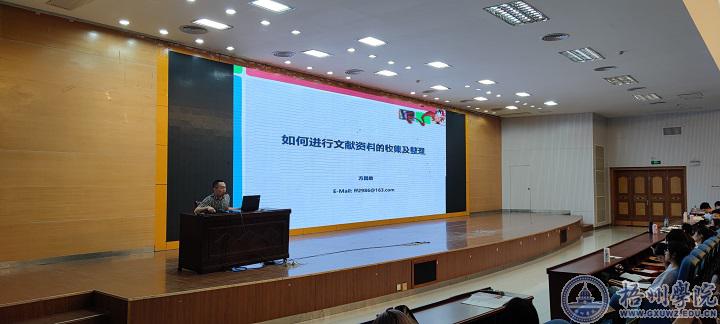 张堂云教授以“论文选题的方法与技巧”为主题,分别从选题来源与类型、选题方法与技巧、选题要求与禁忌三个方面进行阐述,她认为,好的选题应该是具有问题导向、创新性、可行性和学术性,并分别从这四个方面选取四篇论文的选题来一一分析。方昌敢博士以“如何进行文献资料的收集及整理”为主题从什么是文献、什么是文献综述及目的是什么、如何进行文献的收集、如何进行文献的整理四个方面向同学们做了介绍。魏格坤教授分别从论文研究的基本思路、论文大纲的撰写及论文正文的撰写三个方面进行阐述,提出应以三段式结构方式(以问题为导向)搭建整篇论文框架结构。