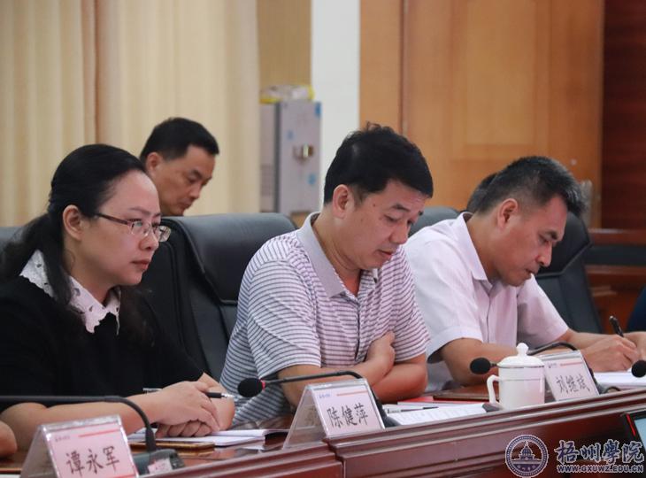 本次学习创新方式,安排集体观看《红色梧州忠诚谱》情景党课,然后采取集中研讨交流相结合的方式进行。在报告厅观看党课后,校党委中心组成员回到第一会议室深入学习习近平总书记在清华大学考察时的重要讲话精神,学习中国共产党广西历史、梧州历史,深入学习《中国共产党普通高等学校基层组织工作条例》《中国共产党统一战线工作条例》。中心组成员韦仕珍、曹迎、玉振明、梁业华、麻新纯、宾月景、黄健武、陈健萍围绕会议学习主题作交流发言。