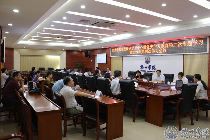 5月26日下午,学校在明理楼学术报告厅和第一会议室召开党委理论学习中心组党史学习教育第二次专题学习暨2021年第四次学习会议。在家校领导韦仕珍、曹迎、玉振明、梁业华、麻新纯、宾月景和其他校党委理论学习中心组成员参加学习会。梧州市委宣传部副部长、市新闻出版局局长刘继斌到场列席旁听。学校党委书记韦仕珍主持会议。