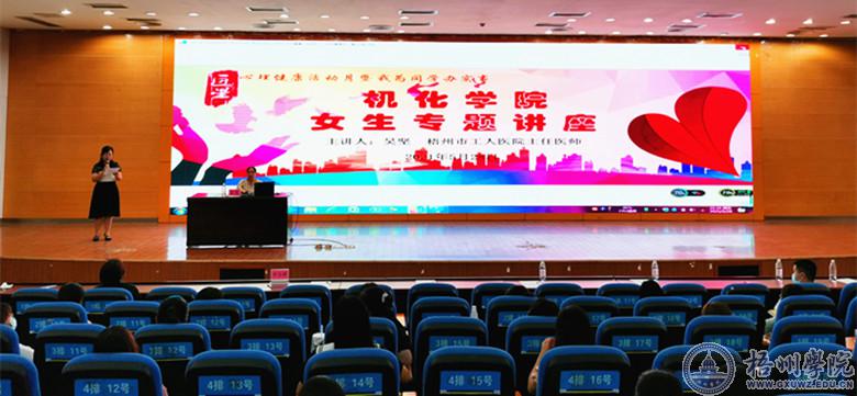 5月28日晚,机化学院开展“机化匠星大讲堂”之女生专题讲座,邀请梧州市工人医院妇产科主任医师吴坚到校作专题讲座。学院全体辅导员以及300余名女生参加讲座。