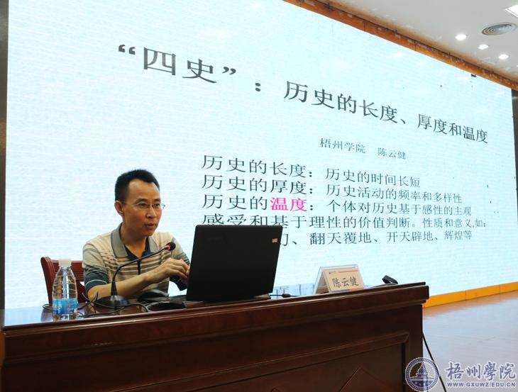 5月27日,梧州市党史学习教育宣讲团宣讲报告会梧州学院学生专场在我校明理楼学术报告厅举办。梧州市宣讲团成员、我校马克思主义学院教师陈云健副教授为250多名学生作了题为《“四史”:历史的长度、厚度和温度》的党史学习教育专题宣讲。