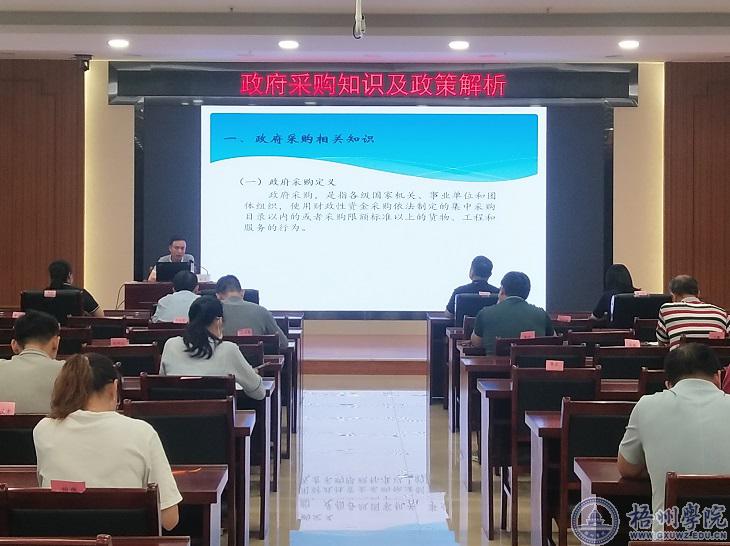 为推进我校采购工作规范化,落实作风建设,提升采购效率,6月4日下午,国有资产管理处邀请梧州市财政局政府采购监督科科长严家志到校作政府采购知识及政策解析讲座。全校31个单位、部门分管招标采购工作的领导及负责具体采购工作人员聆听了讲座。 严家志通过文件解读和案例分析,介绍了什么是政府采购、如何实现政府采购、政府采购违规责任。参训人员表示,通过学习,进一步掌握了业务知识,受到了廉政教育。国有资产管理处表示,将努力实现规范、高效的采购服务,满足学校发展需要。