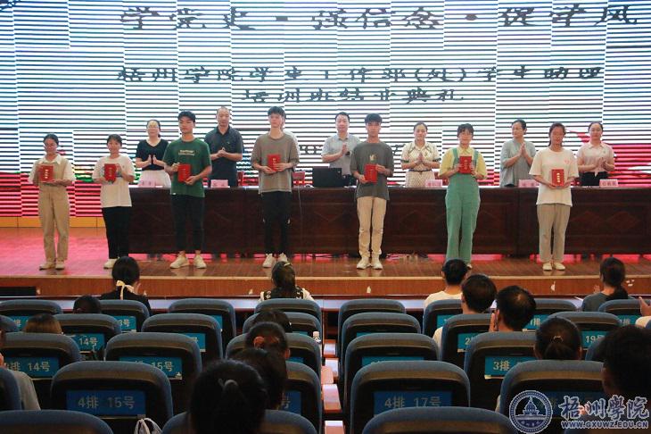 为进一步提升学生助理综合素质,学生工作部(处)于5月17日至20日开展了主题为“学党史·强信念·促学风”的培训班,全体学生工作部(处)学生助理参加培训。6月21日下午在明理楼一楼学术报告厅举行培训班结业典礼。