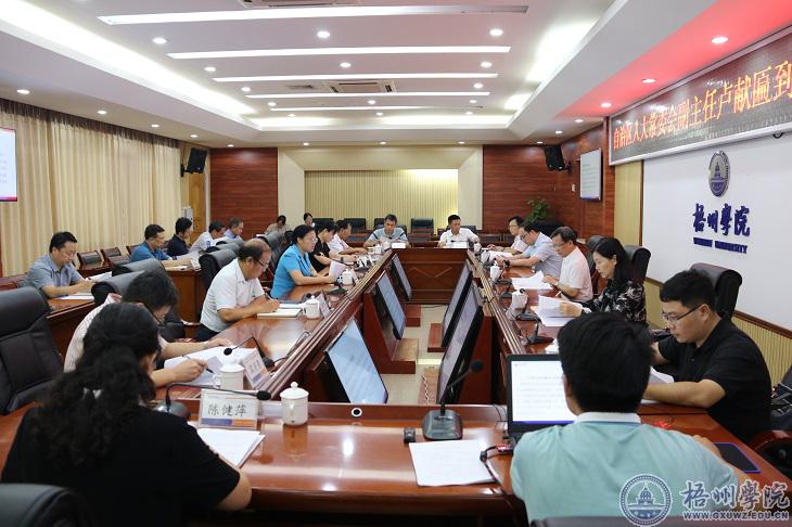 自治区人大常委会秘书梁尤森,梧州市人大教科文卫民委主任委员温伦,学校相关单位、部门负责人参加了调研座谈会。
