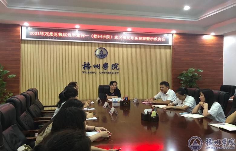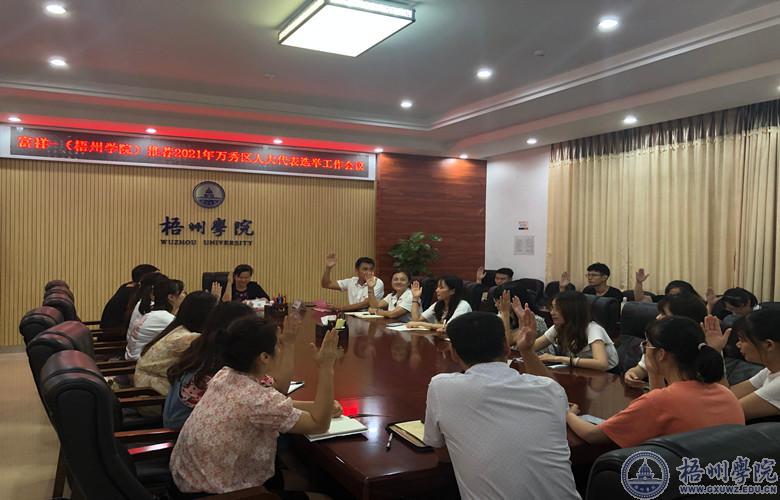 6月25日,学校召开万秀区第三届人大换届选举相关工作会议,学校党委副书记曹迎、选举工作组成员以及师生选民代表参加会议。