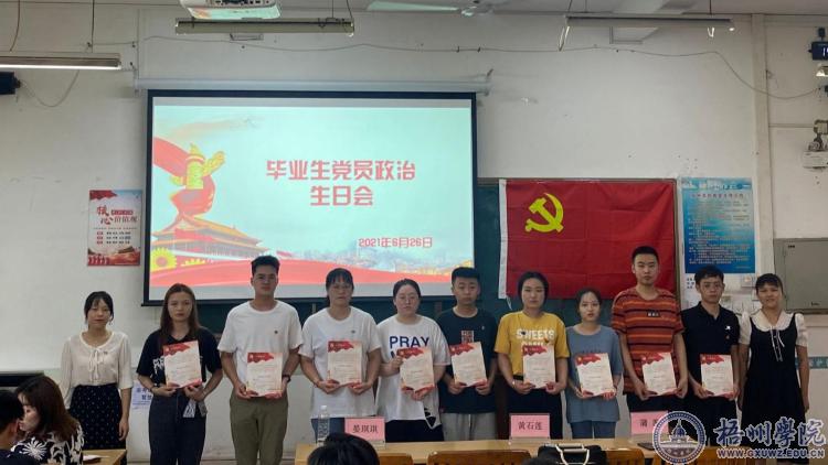 6月26日下午,宝石与艺术设计学院为毕业生党员过政治生日。学院党委副书记黄石莲、学生第一支部书记浦茜和第二支部书记晏琪琪以及毕业生党员参加了本次活动。