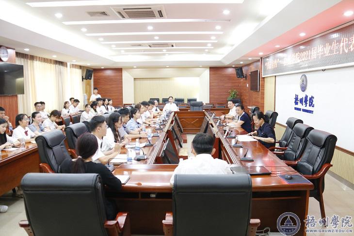 6月28日,我校在明理楼八楼第一会议室召开“书记有约”——2021届毕业生座谈会。学校党委书记韦仕珍、副书记曹迎出席会议,学生工作部(处)负责人、2021届毕业生代表参加了座谈会。