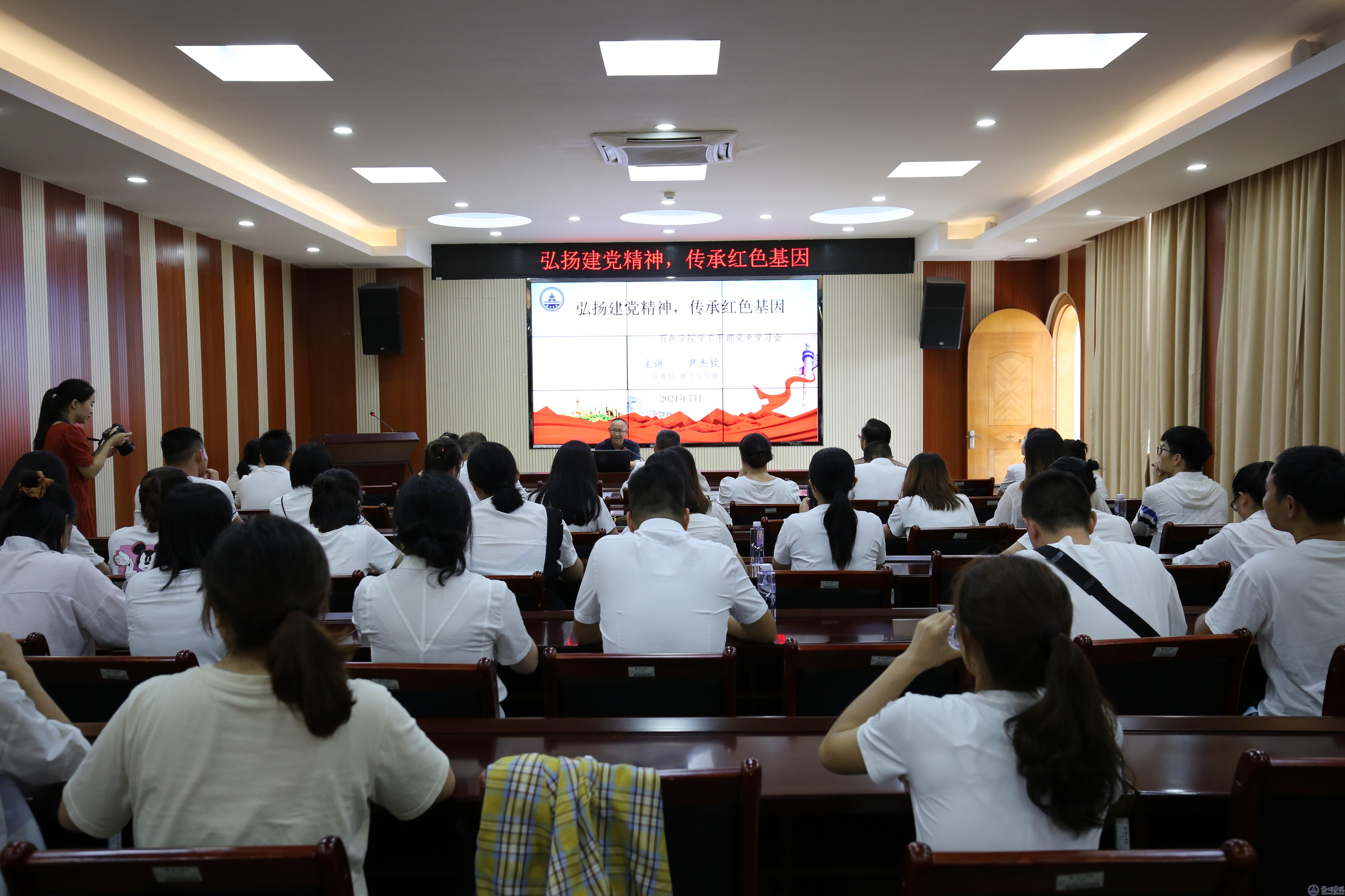 7月5日上午,百色学院党委副书记徐魁峰带领学生工作队伍46人到我校考察交流。校党委书记韦仕珍、副书记曹迎出席有关活动,学生工作部及相关二级学院负责人参加交流。 考察团先后参观了大学生综合发展中心、北校区、宝石文化博物馆、西江商贸文化博物馆和西江流域民间文献研究中心。在参观的过程中,双方人员围绕学生工作各项内容进行交流。 参观结束后,在明理楼七楼视频会议室,我校马克思主义学院院长尹杰钦教授为考察团作了题为《弘扬建党精神,传承红色基因》的专题党课。