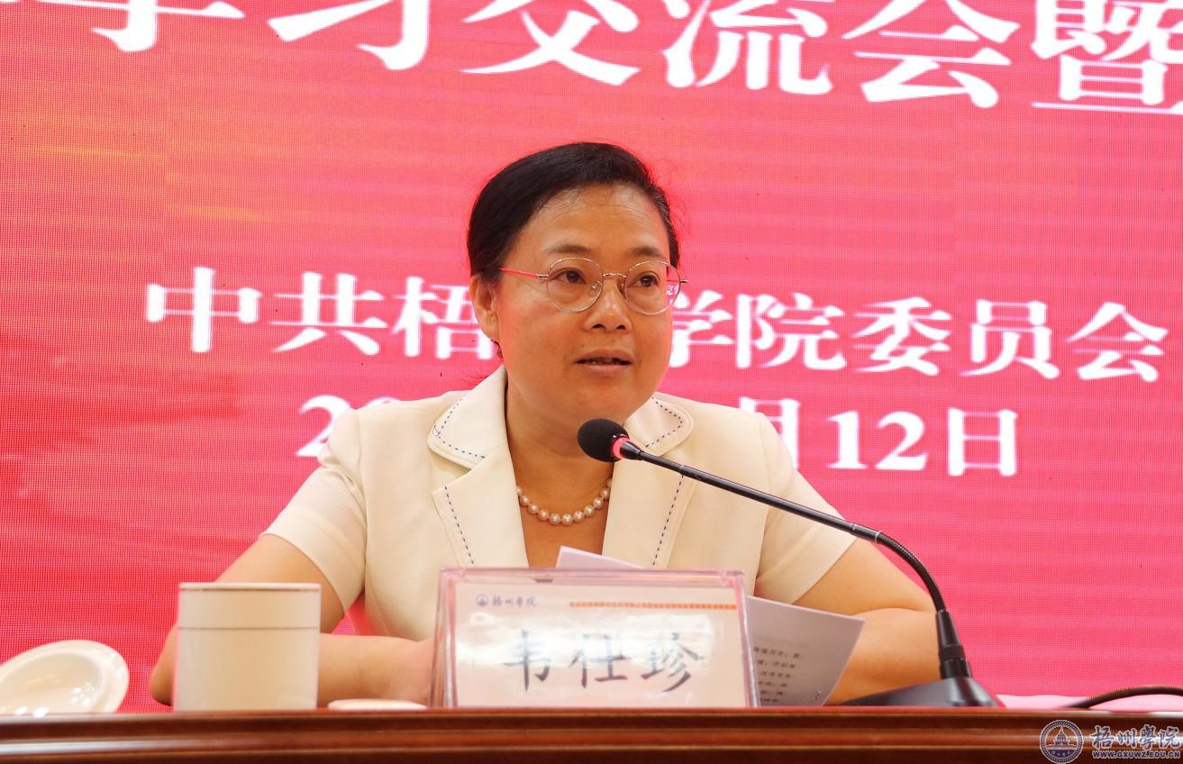 韦仕珍强调,全校各级党组织和广大党员干部师生要进一步提高政治站位,深刻认识习近平总书记“七一”重要讲话的重大意义,进一步增强学习宣传和贯彻落实的思想自觉、政治自觉和行动自觉,将思想和行动统一到习近平总书记“七一”重要讲话精神上来,不断增强“四个意识”,始终坚定“四个自信”,坚决做到“两个维护”。在思想上、行动上、学习中、工作中做到:准确把握习近平总书记“七一”重要讲话的丰富内涵,自觉践行党的初心使命;传承弘扬中国共产党的伟大建党精神,充分发挥党员先锋模范作用;贯彻落实习近平总书记关于“九个必须”的重要论述,深入推进全面从严治党。