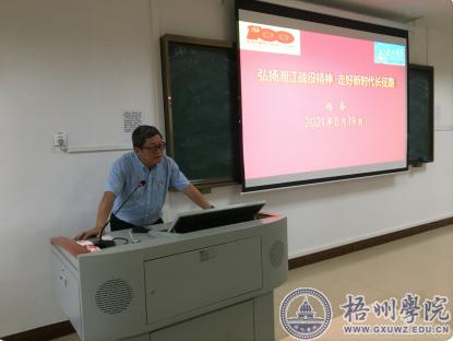 8月19日下午,学校校长杨奔以《弘扬湘江战役精神 走好新时代长征路》为主题,为教师教育学院教师党员上党史学习教育专题党课。