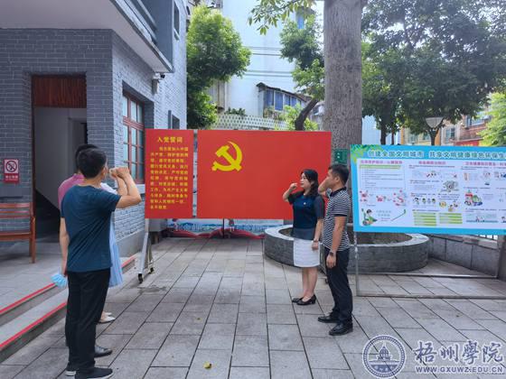 在参观中共梧州地委•广西特委旧址陈列馆时,支部全体党员集体重温入党誓词。面对鲜红的党旗,党员们高举右手庄严宣誓,重温对党忠诚的誓言,坚定理想信念,增强宗旨意识,不忘本真,永葆本色。