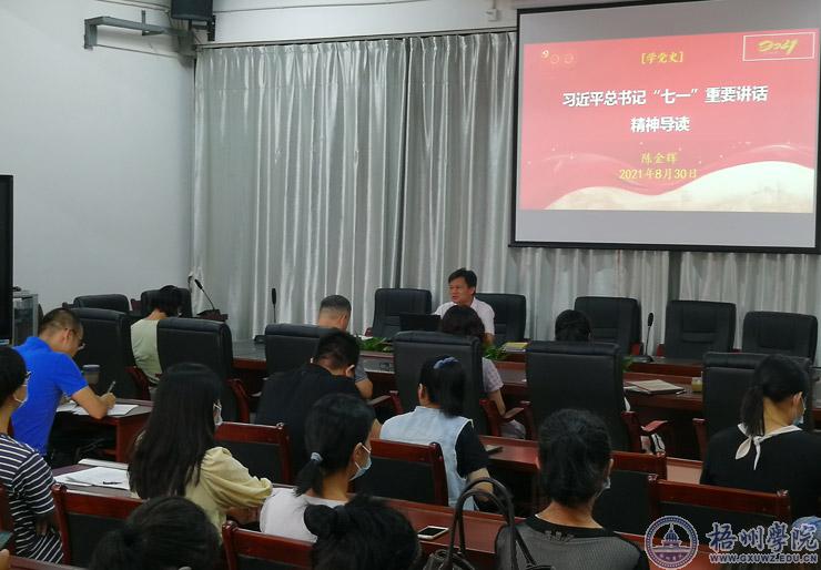 8月30日,机化学院召开学习贯彻习近平总书记“七一”重要讲话精神宣讲会,机化学院党委书记陈金辉作宣讲报告。机化学院全体教职员工参加宣讲会。