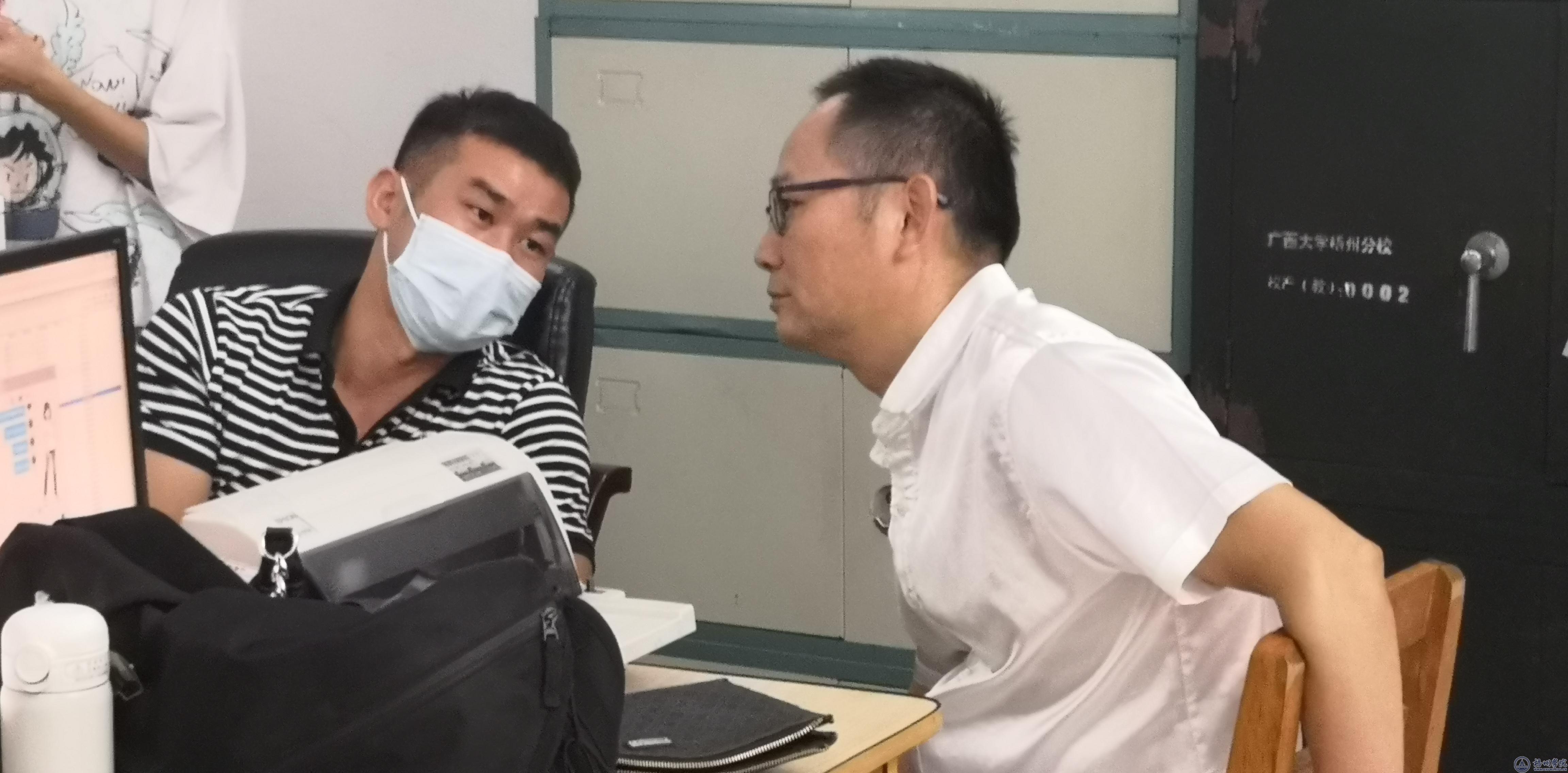 结算科副科长梁家希与吴昊老师交流