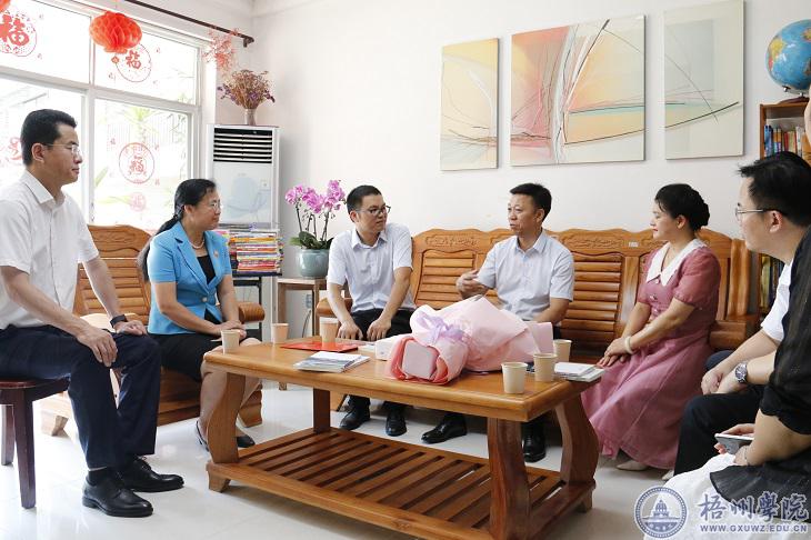 宋银秋是梧州市高层次引进人才,现担任外国语学院教授,是教育部全国一流本科课程评审专家。“感谢你为梧州发展作出的贡献,希望你能扎根梧州,在推动梧州高质量发展中发挥更大作用。”在宋银秋家中,蒋连生与宋银秋亲切交谈,详细了解她的工作生活情况。蒋连生说,市委、市政府大力支持梧州学院高水平学科建设,把梧州学院打造成梧州市高等教育的龙头,希望梧州学院结合梧州市产业发展,引进更多人才,做好学科研究,发挥学科优势,为市委、市政府提供更多智力支持,共同推动梧州经济社会高质量发展。