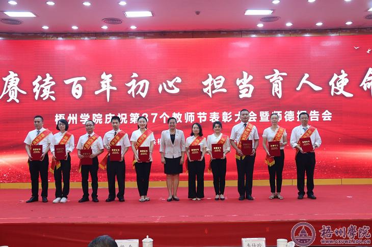 会上,校长杨奔带领新入职教师进行入职宣誓。副校长宾月景宣读了《中共梧州学院委员会、梧州学院关于表彰2021年度优秀教师、优秀教育工作者的决定》。学校领导为获表彰人员颁发荣誉证书。