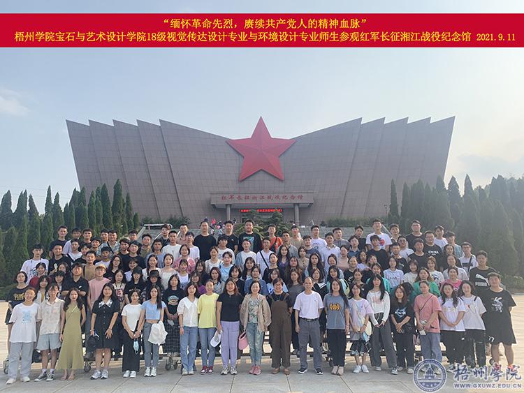 9月11日上午,宝石与艺术设计学院2018级视觉传达设计专业与环境设计专业的115名学生在指导老师的带领下开展毕业设计考察,首站来到广西桂林全州县,参观红军长征湘江战役纪念馆。在讲解员精彩的带领下,缅怀革命先烈,赓续共产党人的精神血脉;感悟红军不怕牺牲、勇往直前、无私奉献的革命精神。